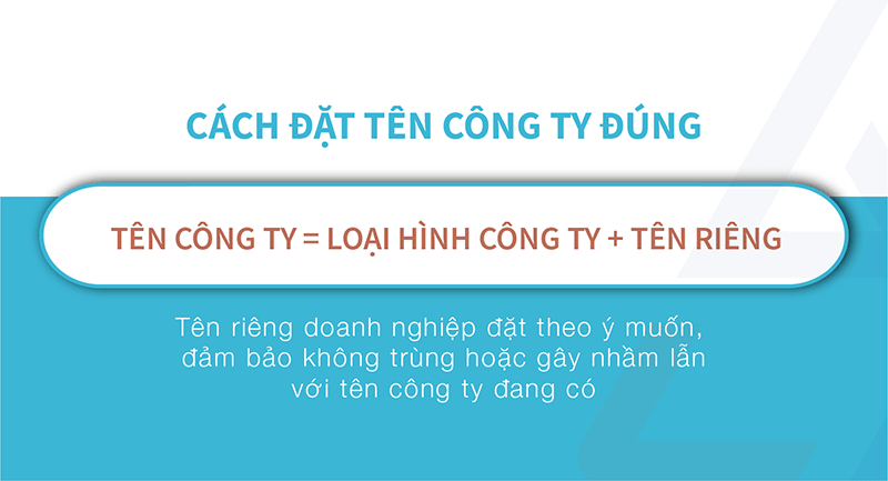 - Tên công ty phải chứa 2 thành tố: Loại hình doanh nghiệp + Tên riêng;