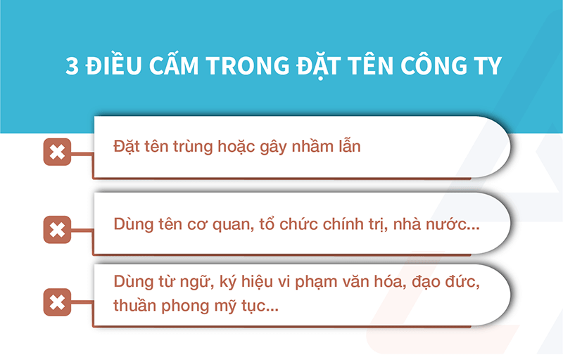 - Không được trùng hoàn toàn hoặc gây nhầm lẫn với các công ty khác;